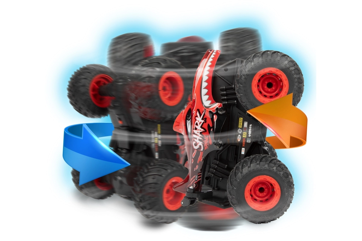 Dva výrazné motívy (DINO alebo žralok) a veľké terénne kolesá pre lepšiu priľnavosť a stabilitu pri jazde aj pri rotáciách.
