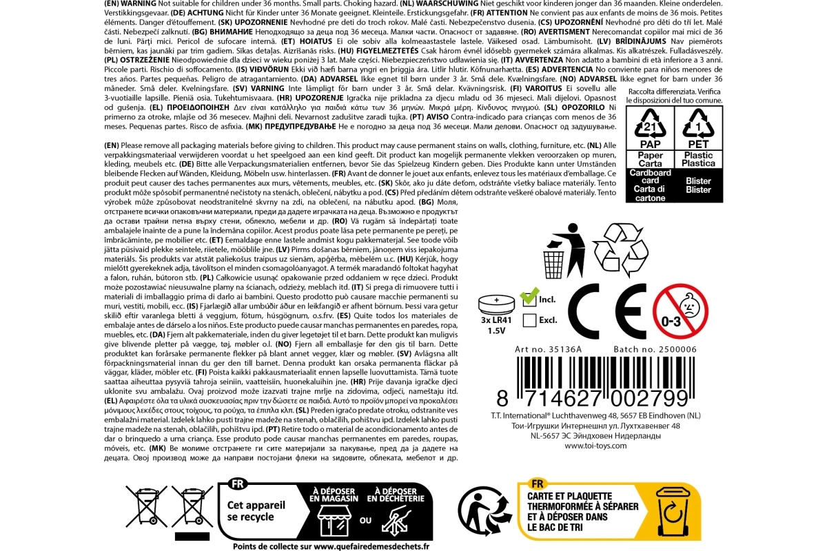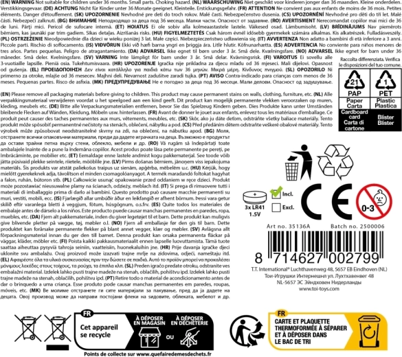 Celá sada je vyrobená z odolného plastu a je pripravená na okamžité použitie – 3× AG13 batérie sú už v balení. Skvelý darček pre malých špiónov, ktorý podporuje kreativitu, fantáziu a jemnú motoriku.