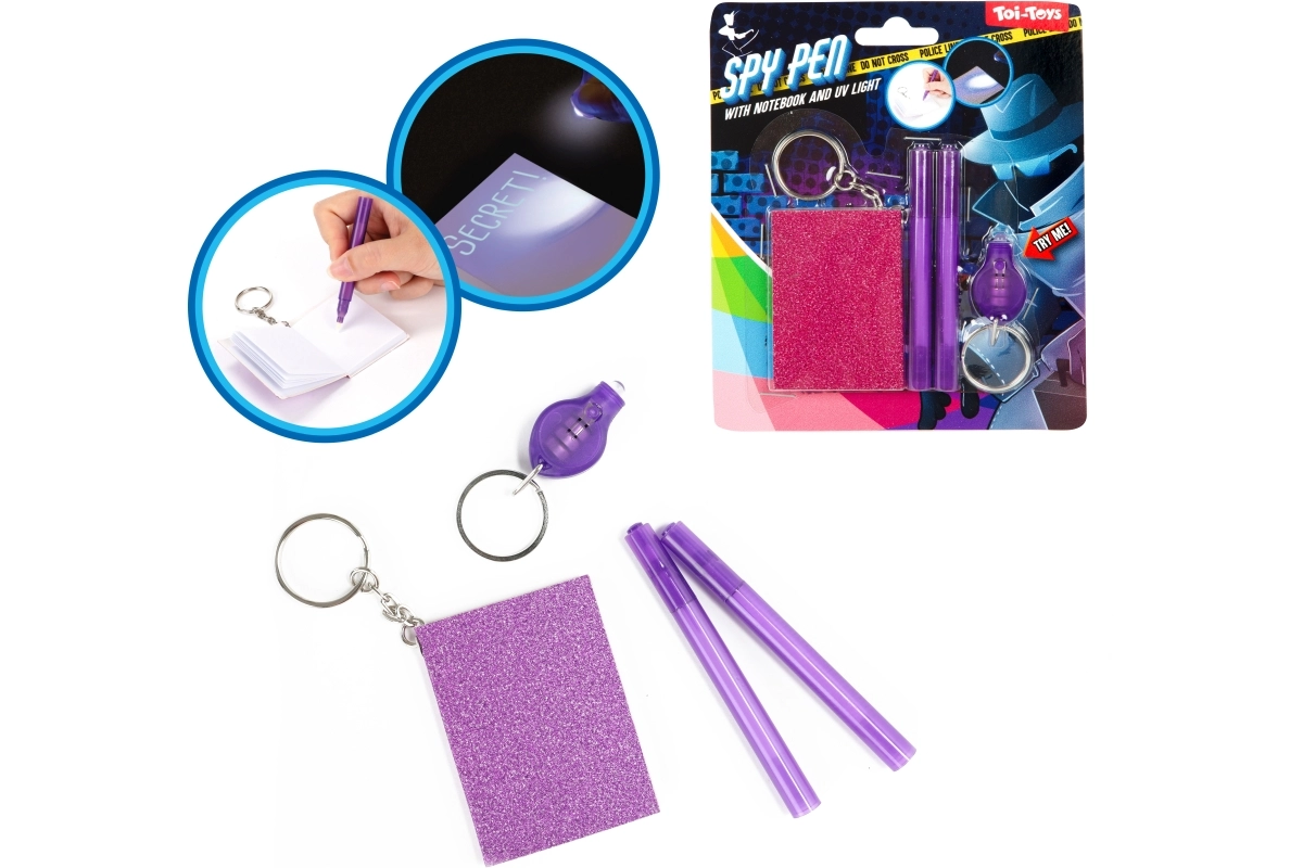 Táto špionážna sada premení každodenné písanie na dobrodružstvo. Čo napíšete kúzelným perom, zostane neviditeľné a odhalí sa iba pomocou priloženej UV baterky. Deti si tak môžu bezpečne schovávať svoje tajné správy, nápady a príbehy do praktického denníka s klipom.