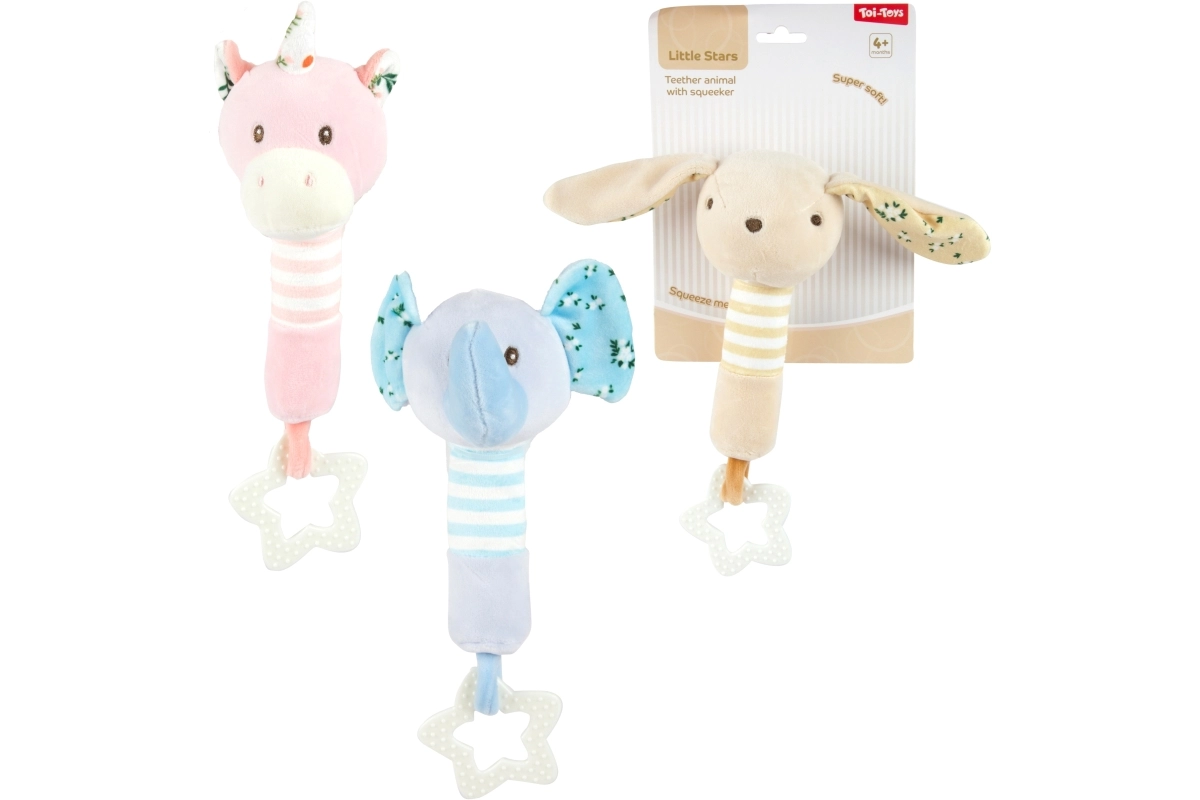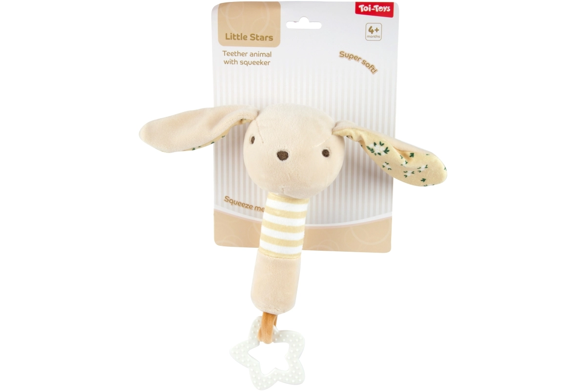 Táto plyšová hračka z kolekcie Little Stars je navrhnutá pre najmenšie rúčky. Jemné materiály, tlmené pastelové farby a priateľské zvieracie motívy zaujmú na prvý pohľad, zatiaľ čo integrované hryzátko v tvare hviezdičky pomáha upokojiť podráždené ďasná. Súčasťou je aj hrkálka a šuštiace prvky, ktoré podporujú sluchové vnímanie a zvedavú hru.