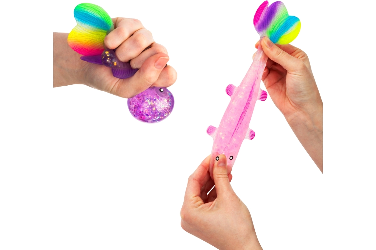 Priesvitné telo s trblietkami a farebná chvostová plutva zaujmú deti aj dospelých a lákajú k ďalšiemu mačkaniu.