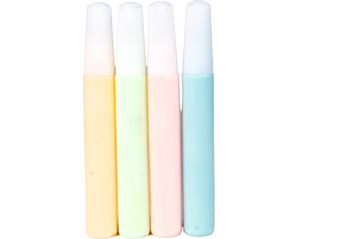 Sada obsahuje žltú, svetlozelenú, ružovú a svetlomodrú pre pestré a kreatívne kombinácie na textile.