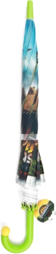 Dáždnik má manuálny vystreľovací mechanizmus na rýchle otvorenie, bezpečnostné zakončenie drôtov a zaoblený hrot pre pokojnejšie používanie. Zelená J-rukoväť sa dobre drží a ľahko sa zavesí. Zapínanie na druk udržiava dáždnik kompaktne zložený, balenie vo vrecku uľahčuje uloženie.