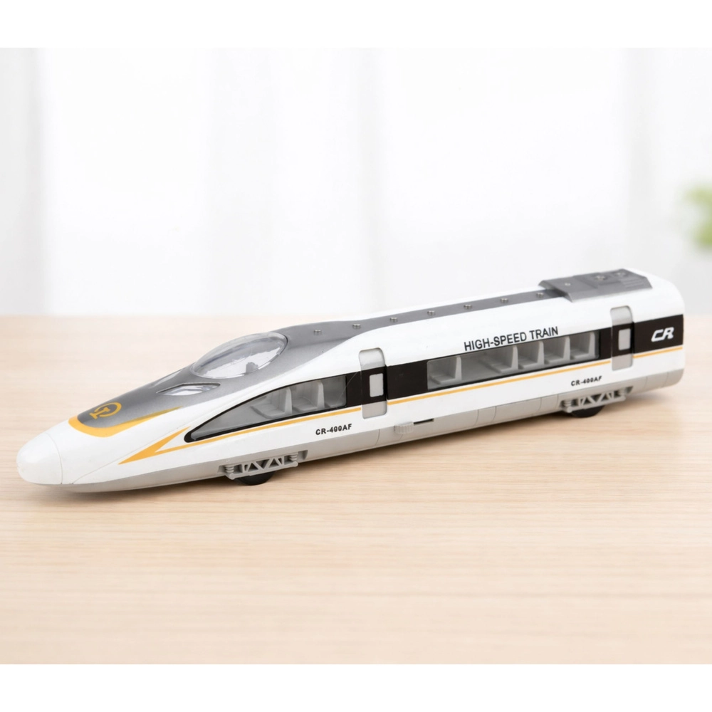 Vysokorýchlostný vlak je inšpirovaný modernými rýchlovlakmi a zaujme svojou aerodynamickou siluetou a starostlivo spracovanými detailmi. Integrované svetlo a zvuk umocnia atmosféru jazdy, zatiaľ čo setrvačný (push-and-go) pohon po postrčení sám pokračuje vpred.