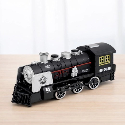 Štýlová čierna parná lokomotíva inšpirovaná klasickými parovozmi prináša realistickú zábavu pre deti. Ponúka zvukové efekty, imitáciu dymu a senzor prekážok, ktorý automaticky mení smer jazdy. Detaily ako výrazné kolesá, komín a bočné potrubie podčiarkujú autentický dizajn a odolné plastové prevedenie.