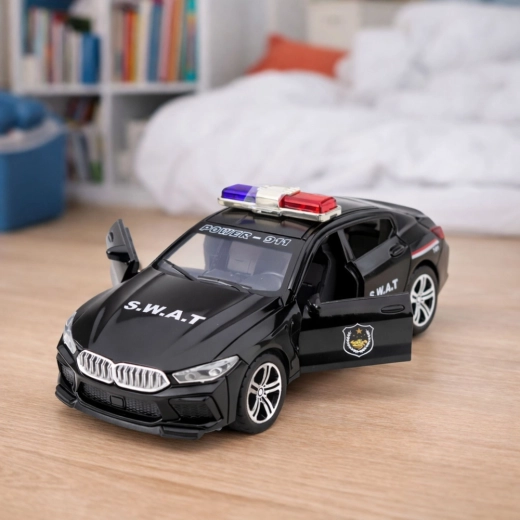 Vstúpte do akcie s čiernym modelom SWAT inšpirovaným špeciálnymi jednotkami. Precízne spracovanie, taktické označenia a realistická línia karosérie umocňujú zážitok z hry. Strechu zdobí červeno-modrý maják, ktorý spolu s autentickými zvukmi prináša atmosféru skutočného zásahu.