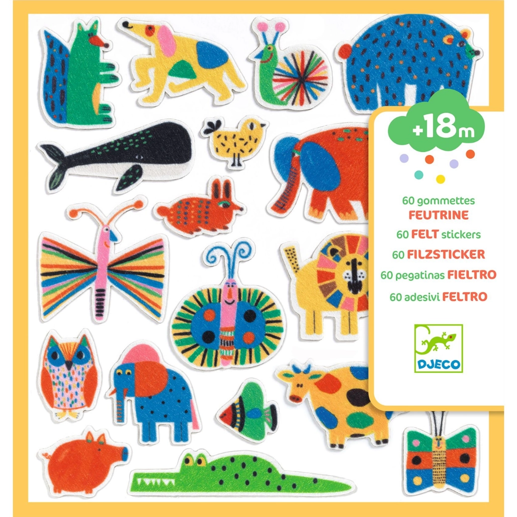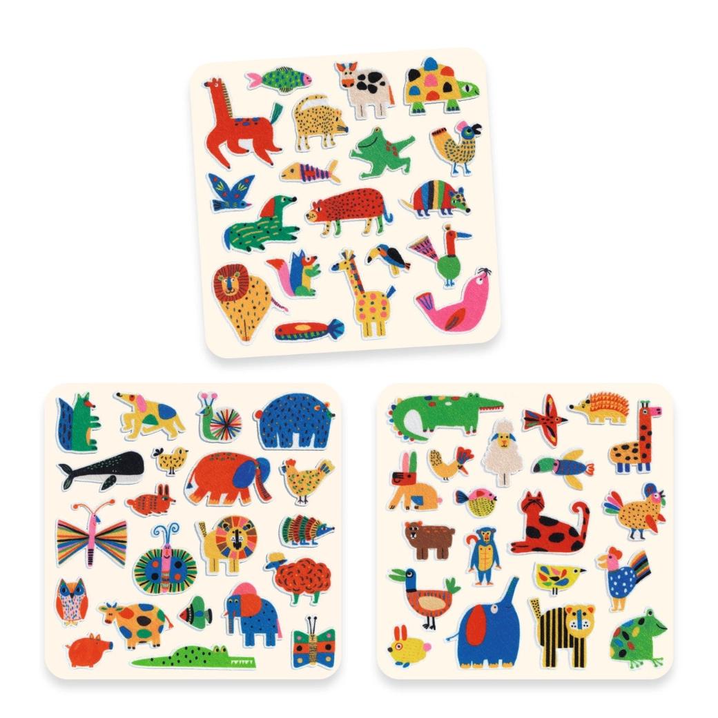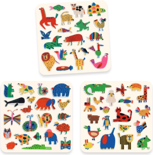 Sada Djeco nálepiek Zvieratá všade naokolo prináša zábavné motívy zvieratiek, ktoré deti milujú. Jednoduché a jemné lepenie umožňuje opakované nalepovanie a ľahkú manipuláciu bez trhania papiera. Deti si tak precvičia koordináciu oko–ruka a rozšíria slovnú zásobu pri spoznávaní zvierat.