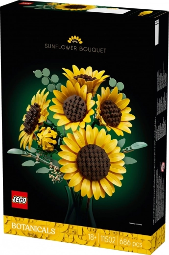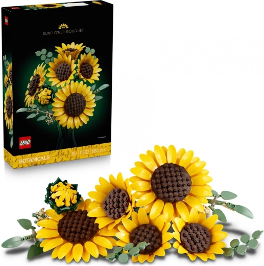 Vytvorte si doma slnečnú atmosféru s kyticou slnečníc z kolekcie LEGO Botanicals. Zostavíte púčik, tri rozkvitajúce a dva plne rozvité kvety, ktoré doplnia štyri eukalyptové stonky. Vďaka premysleným stavebným prvkom majú kvety verné tvary okvetných lístkov a textúrované stredy, pričom stonky a listy možno ľahko polohovať pre perfektnú kompozíciu do vázy.