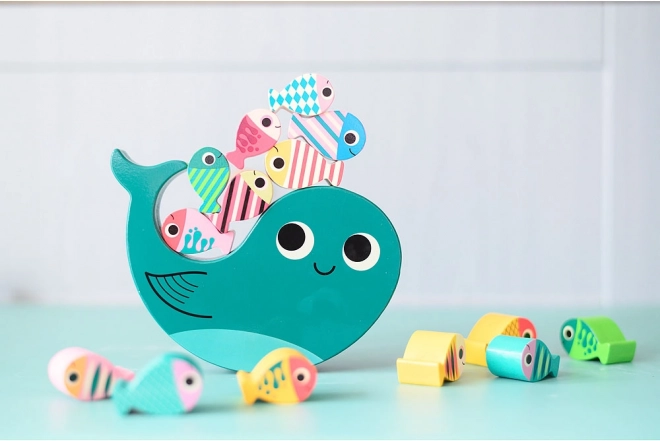 Nasadzujte rybičky na veľrybu tak, aby sa neprevrátila! Táto hra je nielen skvelá zábava, ale zároveň stimuluje u detí jemnú motoriku a zrakovo-pohybovú koordináciu. Kvalitné materiály a ekologický prístup výroby zabezpečujú, že je hra nielen bezpečná, ale aj šetrná k životnému prostrediu.