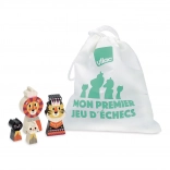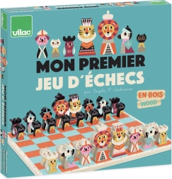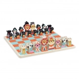 Šachové figúrky sú ilustrované ako rôzne zvieratá, čo robí hru zaujímavou a príťažlivou pre malé deti.