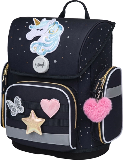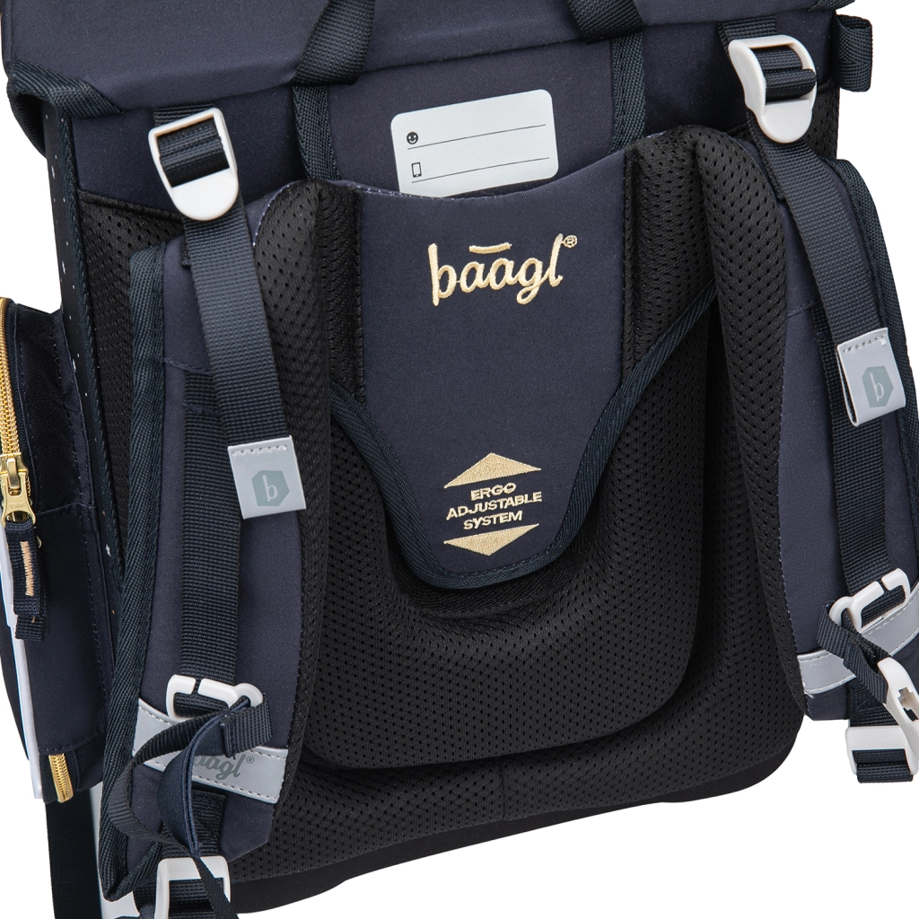 Aktovka BAAGL Ergo Unicorn Gold je navrhnutá pre deti od 1. ročníka ZŠ. Nízka hmotnosť nepresahujúca 1200 g a pevná konštrukcia so zdravo tvarovaným chrbtom zaručujú pohodlné nosenie bez zbytočnej záťaže. Vďaka ERGO Adjustable System a plne nastaviteľným popruhom sa aktovka perfektne prispôsobí postave dieťaťa.