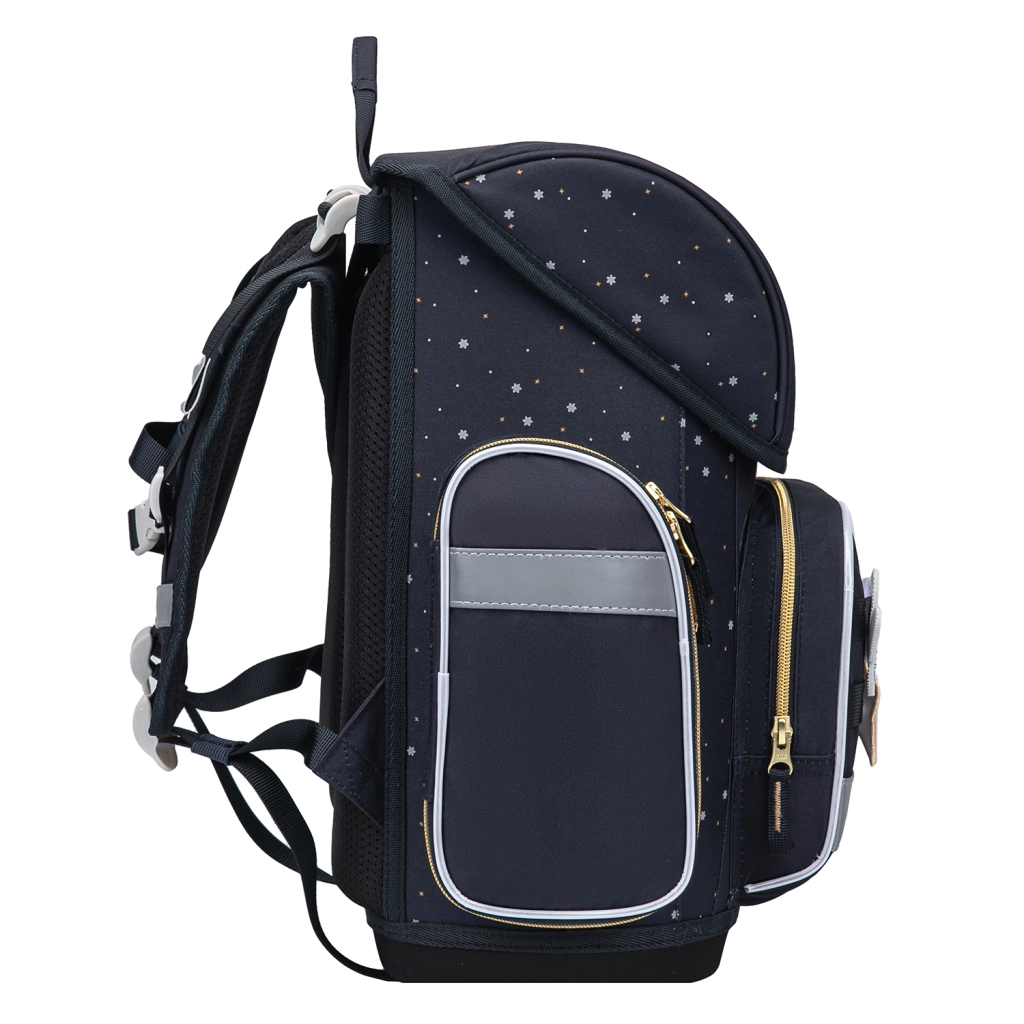 Vodoodolný materiál, pevné dno a kvalitné zipsy chránia školské potreby za každého počasia. Chytré členenie vnútorného priestoru s organizérom, rozvrhom hodín a sťahovacím popruhom udrží ťažšie učebnice pri chrbte pre lepšiu stabilitu. Izolované predné vrecko a dve bočné vrecká pojmú desiatu aj fľašu na pitie. Nechýbajú reflexné prvky pre bezpečnosť za šera.