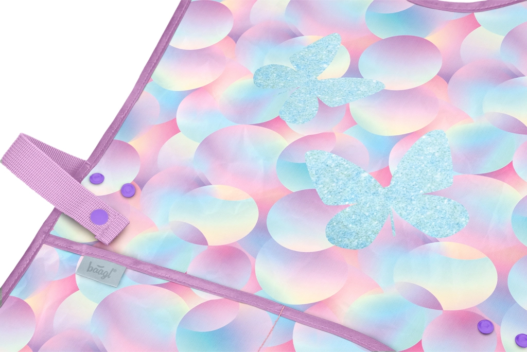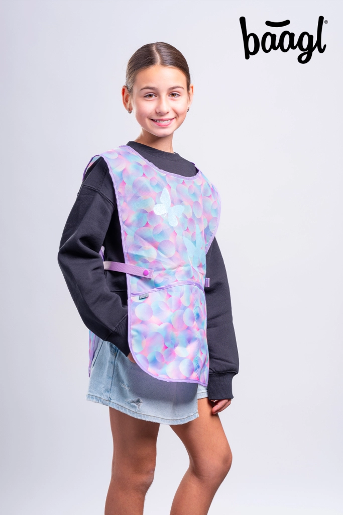 Doprajte deťom voľnosť pri tvorení bez obáv zo škvŕn. Detská zástera BAAGL Candy s jemným pastelovým vzorom a motýlikmi je ideálna na výtvarnú výchovu, pracovné činnosti aj domáce tvorenie. Odolný, hladký povrch sa ľahko utiera a rýchlo schne, takže je pripravená na ďalšie použitie behom chvíľky.
