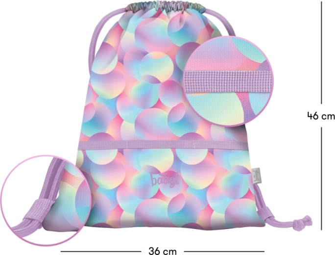 Štýlové vrecko Baagl Candy s pastelovým bubble vzorom je skvelým doplnkom pre deti aj dospelých. Vďaka odolnej textílii zvládne každodenné používanie a ľahko sa čistí. Dvojité šnúrky zabezpečujú rýchle uzavretie a zároveň pohodlné nosenie ako batoh.