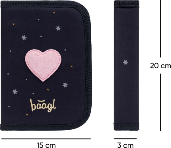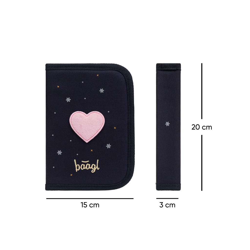 Praktický a odolný peračník BAAGL Unicorn Gold kombinuje elegantný dizajn s premyslenou funkčnosťou. Jednoposchodová konštrukcia s dvoma chlopňami a kvalitný zips YKK zaistia pohodlné a bezpečné uloženie písacích potrieb. Vo vnútri nechýba vrecko na drobnosti a okienko na rozvrh hodín pre rýchly prehľad.