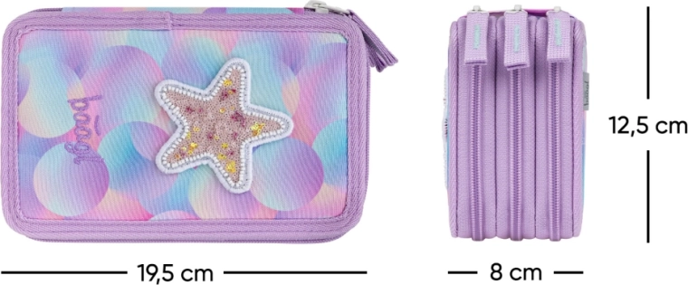 Štýlový a extra priestranný trojposchodový peračník BAAGL Candy udrží všetky písacie potreby prehľadne na jednom mieste. Ponúka tri samostatné komory, gumičky pre hrubé pastelky a fixky, zosilnený chrbát pre ľahké zatváranie a spoľahlivé zipsy YKK. Ideálna voľba pre školákov, ktorí chcú poriadok aj štýl. Peračník je bez náplne.