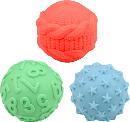 Rôzne povrchy a výstupky podporujú zmyslovú stimuláciu, posilňujú úchop a lákajú k stláčaniu, hádzaniu aj kotúľaniu.