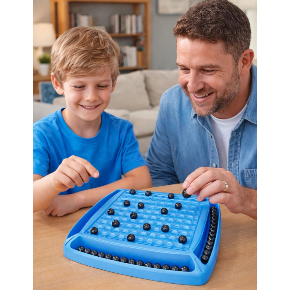 Magnetická stolová hra pre 1–4 hráčov rozvíja logické myslenie, predvídanie ťahov súpera a trpezlivosť. Každé umiestnenie guľôčky môže spustiť reťazovú reakciu, ktorá prevráti priebeh celej partie. Vďaka pevnej plastovej hernej doske a 40 magnetickým guľôčkam je hra odolná, ľahko prenosná a pripravená na rýchlu akčnú partiu kedykoľvek.