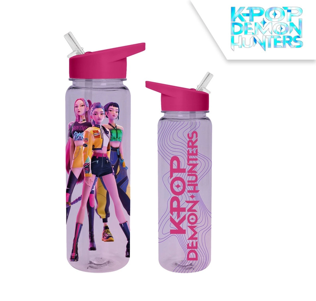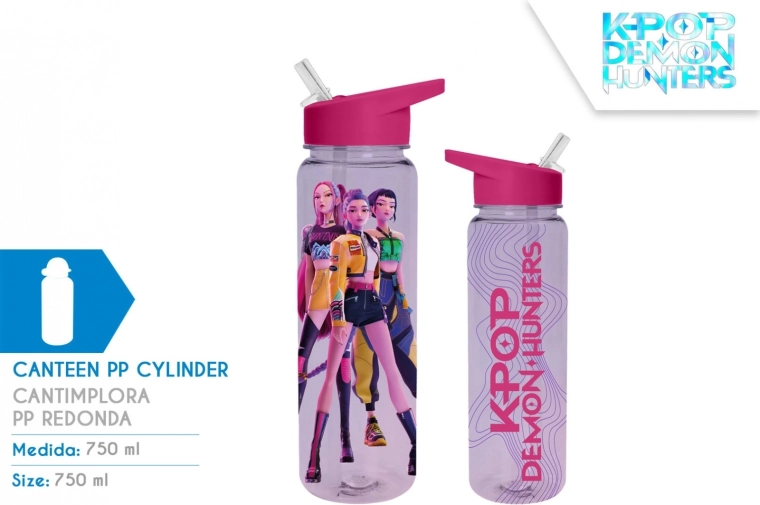 Štýlová športová fľaša s objemom 750 ml s motívom K-POP Demon Hunters je ideálna na tréning, do školy aj na cesty. Ľahký a odolný materiál PP zaistí pohodlné používanie a jednoduchú údržbu, praktické viečko pomáha proti rozliatiu a udržiava nápoj čerstvý po celý deň.