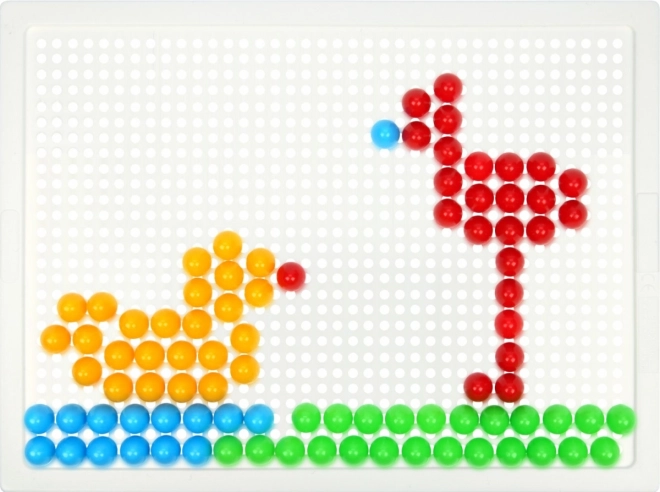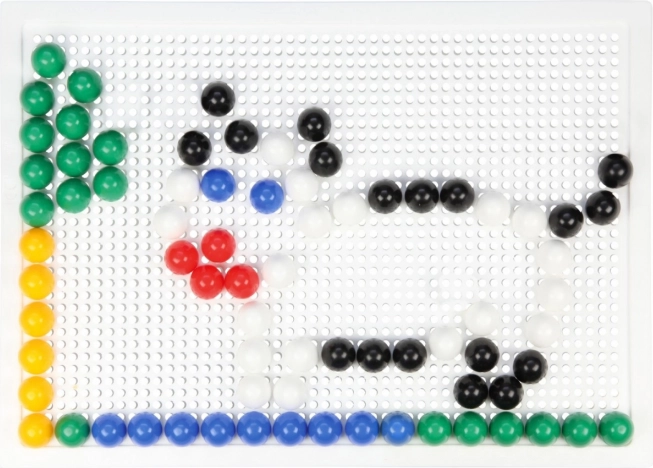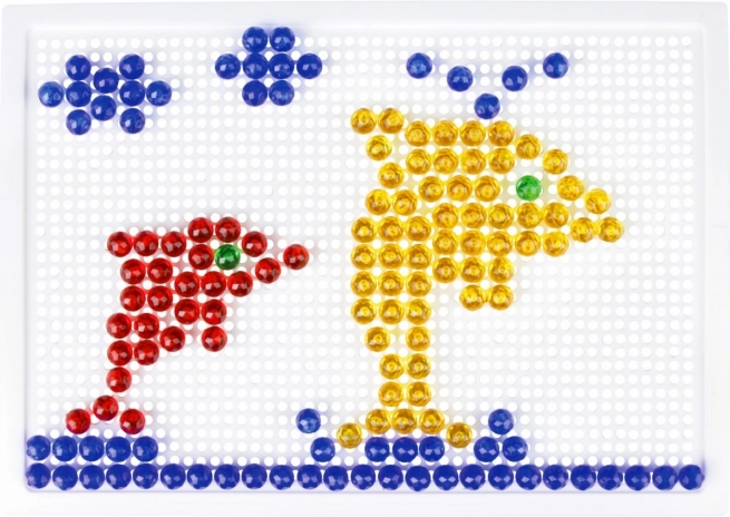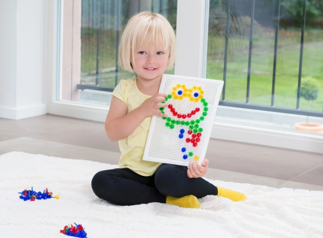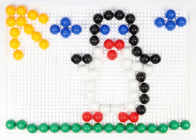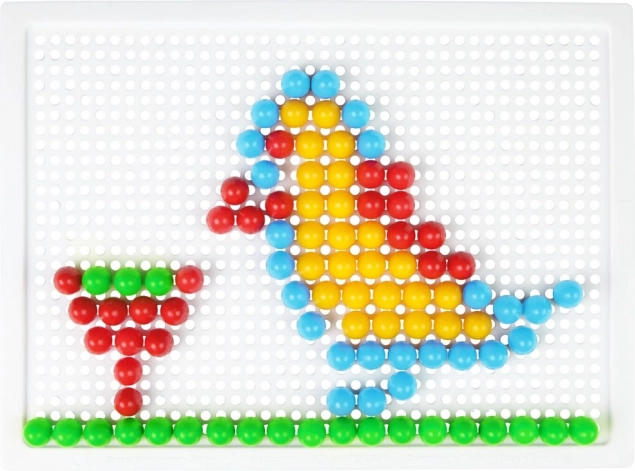Obsahuje plastovú mriežku 21 × 16 cm a 100 kolíčkov s priemerom 10 mm v pestrých farbách. Set je balený v kartónovom obale a je vhodný pre deti od 3 rokov. Predlohy nie sú súčasťou – priestor pre fantáziu je tak neobmedzený.