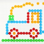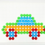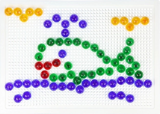 Vkladanie kolíčkov do mriežky trénuje úchop, koordináciu oko–ruka a trpezlivosť. Ideálna aktivita pre predškolákov.