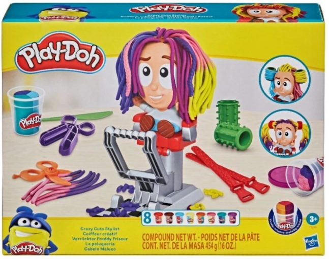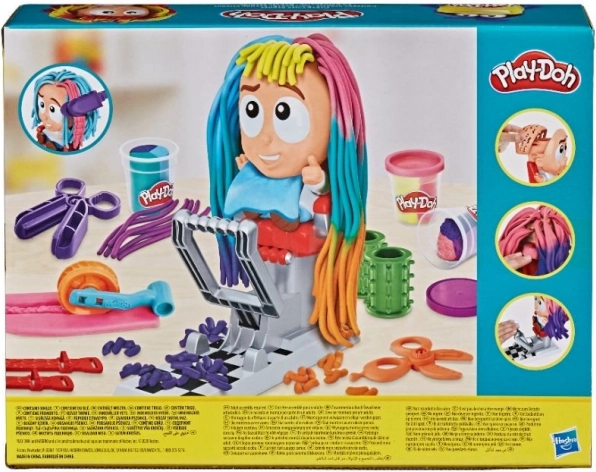 S týmto kaderníckym setom Play-Doh vznikajú bláznivé účesy raz-dva. Usaďte postavičku do kresla, zatlačte a z hlavy vyrastie farebná hriva, ktorú môžete ďalej strihať, česať a zdobiť. Viacfarebná modelovacia hmota a zábavné doplnky robia z každého strihania nový príbeh plný fantázie.
