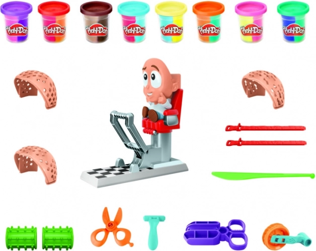 - Figúrka s kreslom, lisovacia základňa, nožnice, hrebeň, formičky, kelímky modelovacej hmoty Play-Doh (viac farieb)