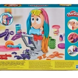 Posaďte figúrku do kresla a zatlačte – z hlavy sa okamžite vytlačí pestrá hriva Play-Doh, pripravená na strihanie a styling.