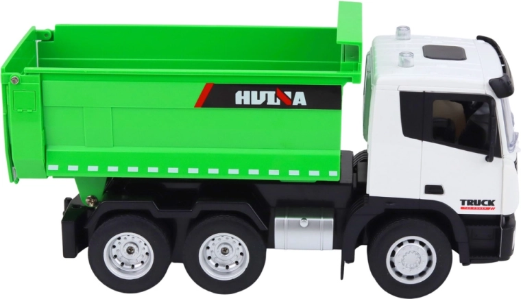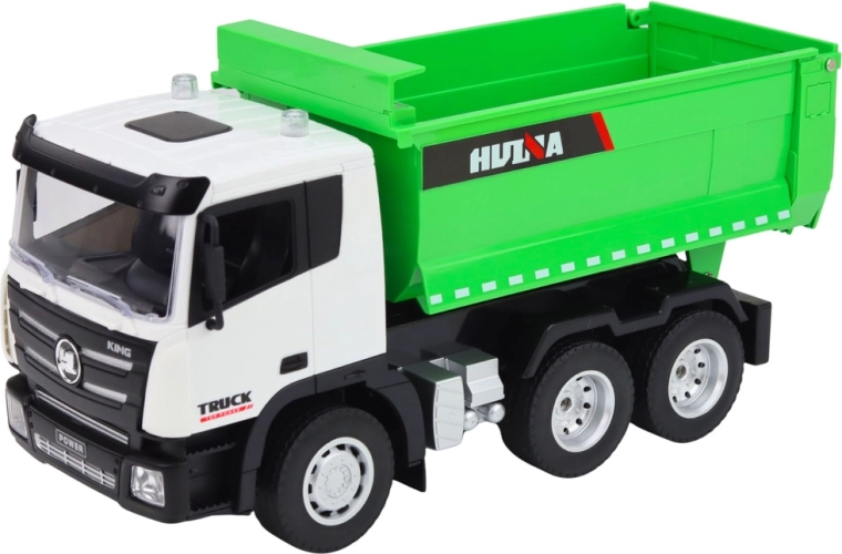 Realistický RC sklápač v mierke 1:18 s bielou kabínou a zelenou korbou prináša deťom autentickú stavebnú zábavu. Stabilné riadenie na frekvencii 2,4 GHz, zdvíhacia korba ovládaná na diaľku, svetelné a zvukové efekty aj automatická jazda robia z každej hry akčný zážitok.