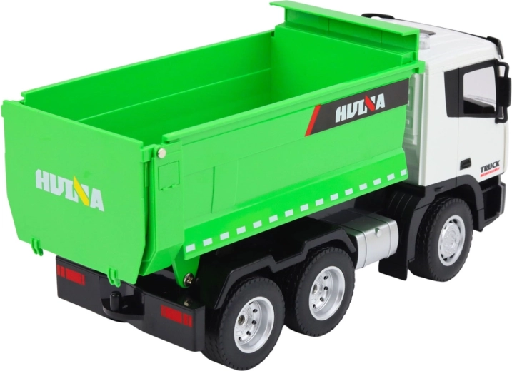 - Realistický dizajn: biela kabína, detailné prvky, zelená sklápačová korba.