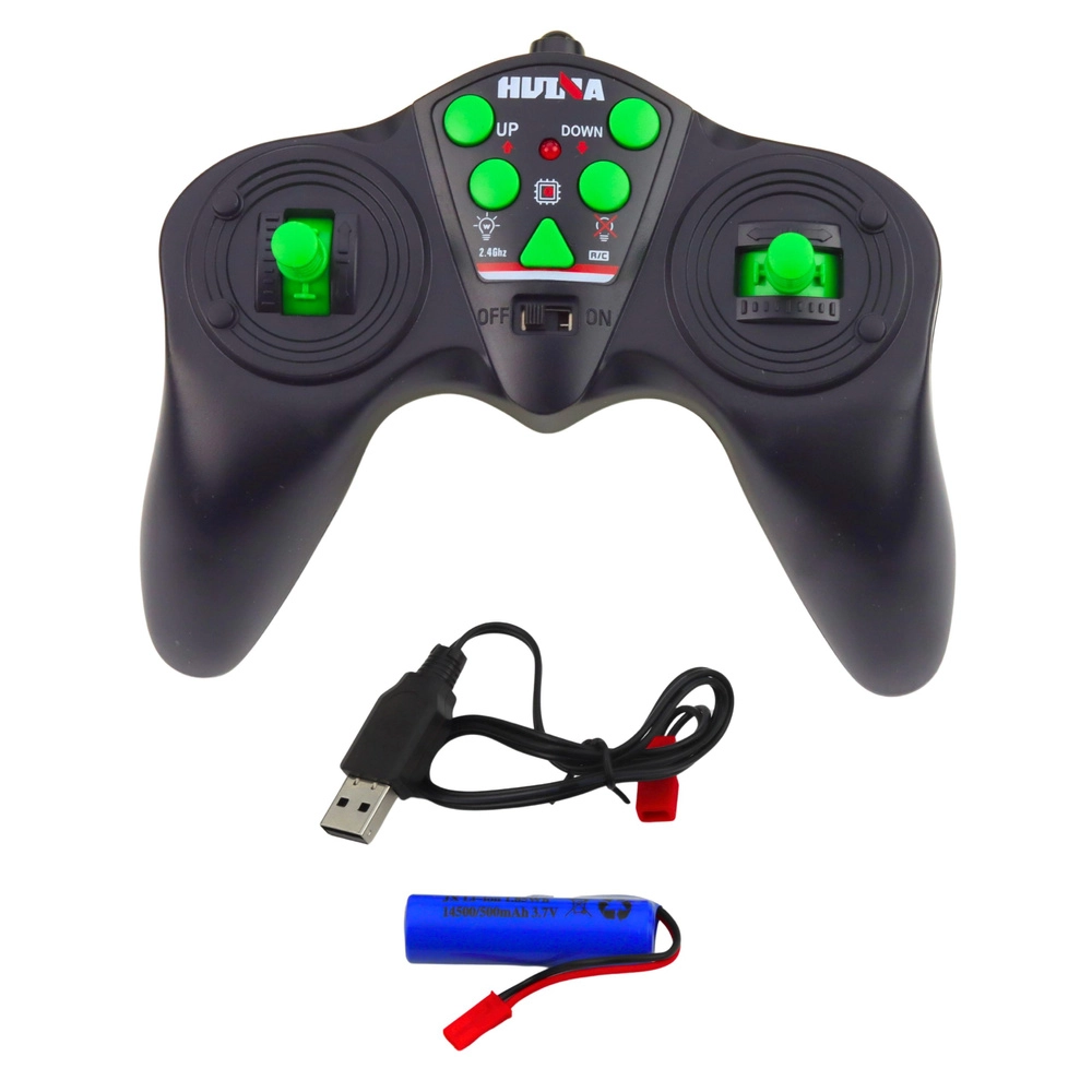 V balení nájdete ovládač, USB kábel a akumulátor 3,7 V 500 mAh – stačí vložiť 2× AA do ovládača a vyraziť.