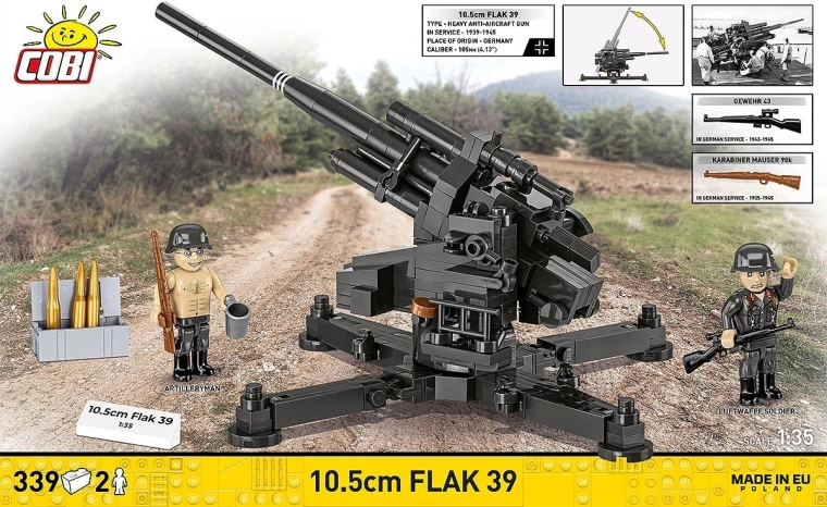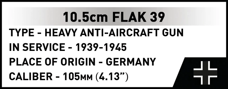 Model 10,5 cm Flak 39 prináša do sveta stavebníc realizmus ťažkej protileteckej techniky z éry druhej svetovej vojny. Robustná konštrukcia, premyslené mechaniky a historická autentickosť z neho robia ideálny kúsok pre zberateľov aj nadšených staviteľov. V mierke 1:35 skvelo vynikne ako samostatná dominanta vitríny alebo súčasť väčšej diorámy.