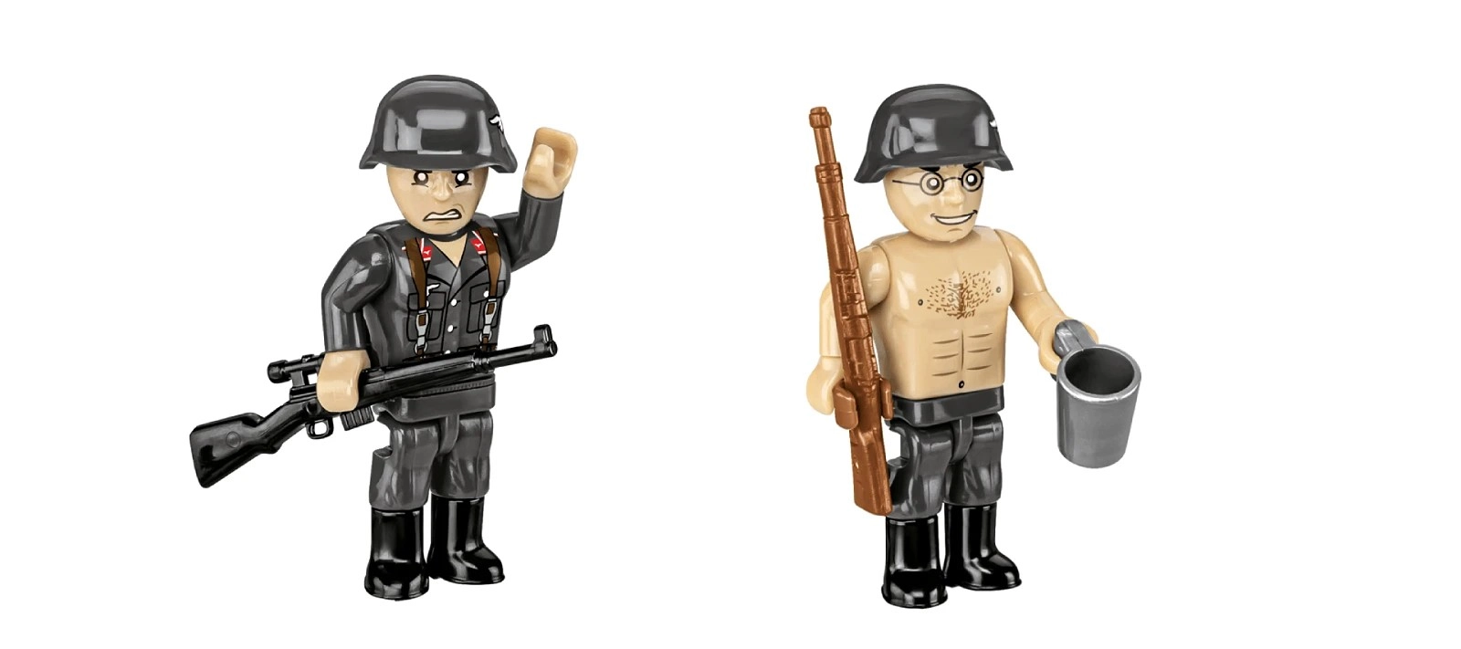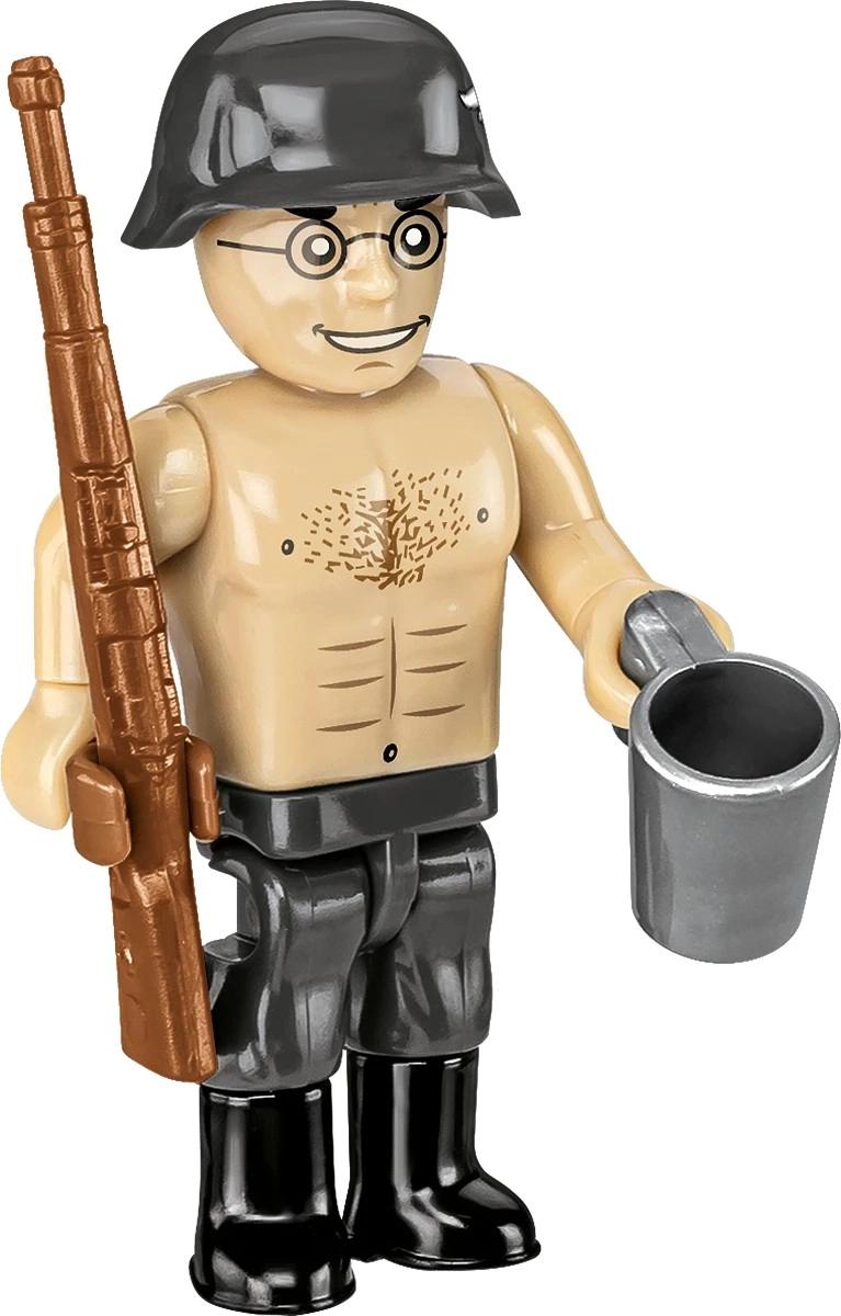 Vďaka pohyblivým častiam – nastaviteľnému námeru hlavne a otočnému lôžku – pôsobí model vierohodne pri hraní aj pri statickom vystavení. Dve figúrky delostrelcov s výbavou (karabíny, hrnček, debna s muníciou) dodávajú scéne život a príbeh. 100% potlače bez nálepiek zaručujú odolnosť a čistý vzhľad aj po dlhých hodinách zábavy.