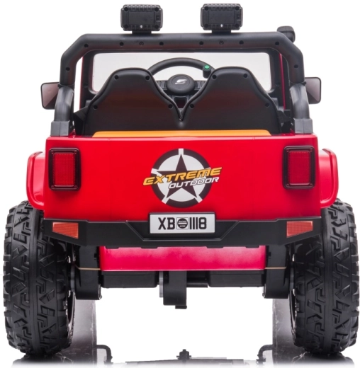 Jeep Monster 24V je detské elektrické autíčko do terénu, ktoré zvládne dobrodružstvá na záhrade aj na pevnom povrchu. Štyri výkonné motory 4×200 W v kombinácii s akumulátorom 24 V 7 Ah zabezpečujú silný záber a plynulú jazdu. Veľké penové EVA kolesá 30×12 cm tlmia nerovnosti a zadné pruženie zvyšuje komfort. Rodičia ocenia diaľkové ovládanie 2,4 GHz s tromi rýchlosťami a núdzovým tlačidlom Stop.
