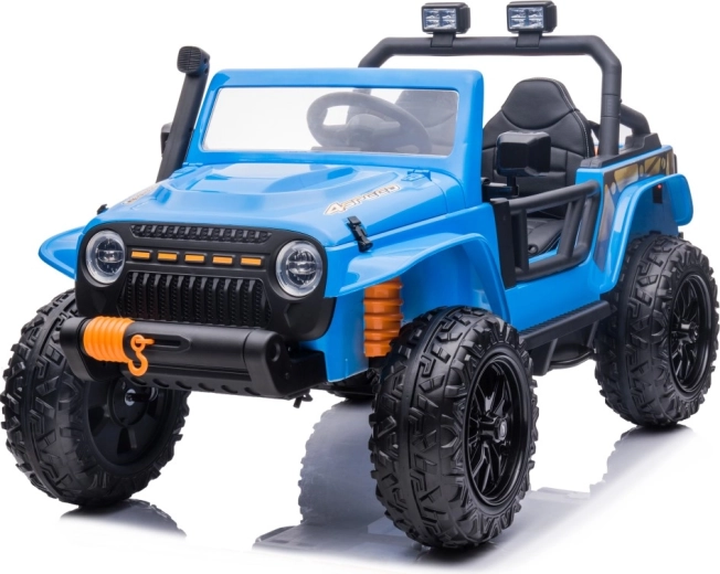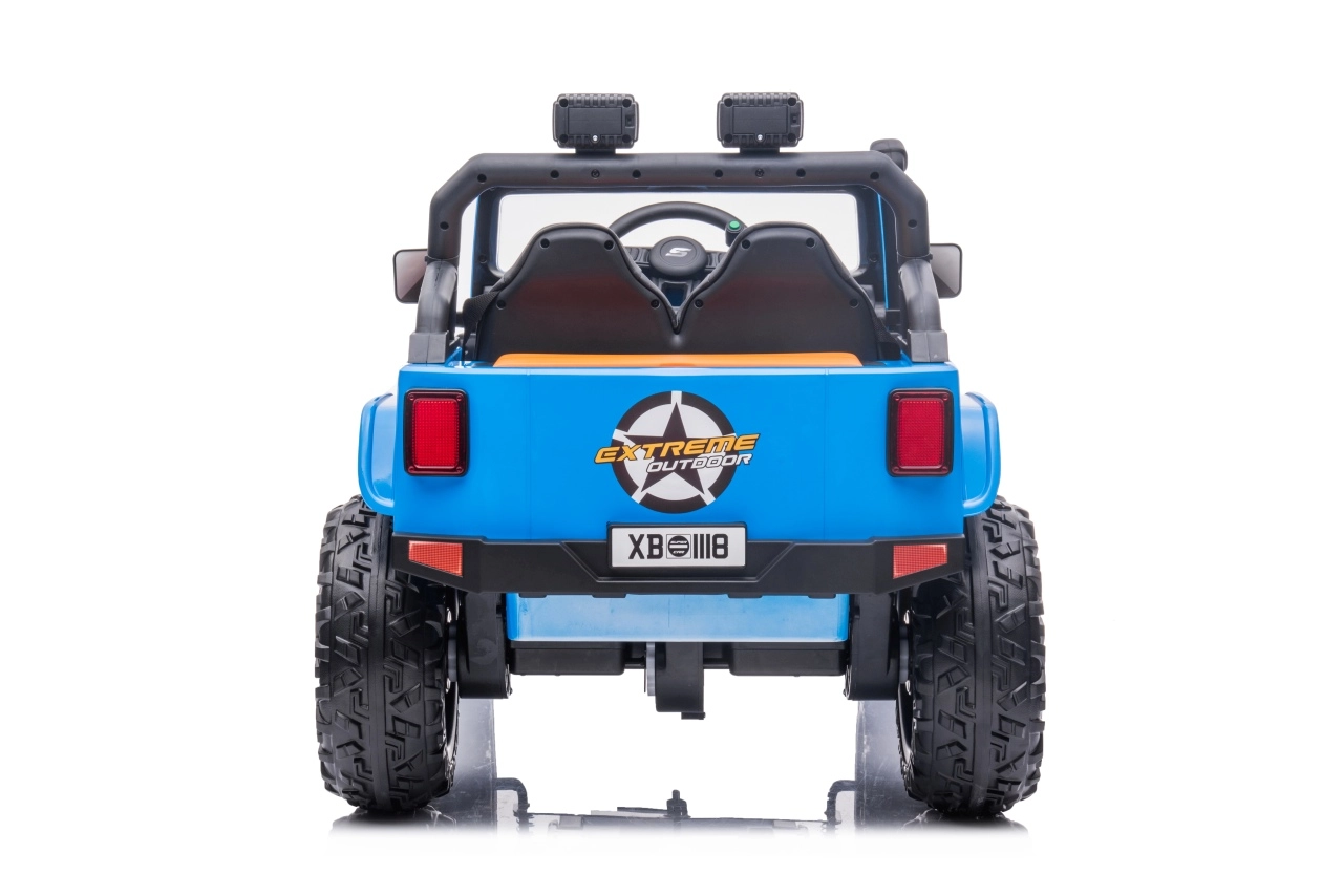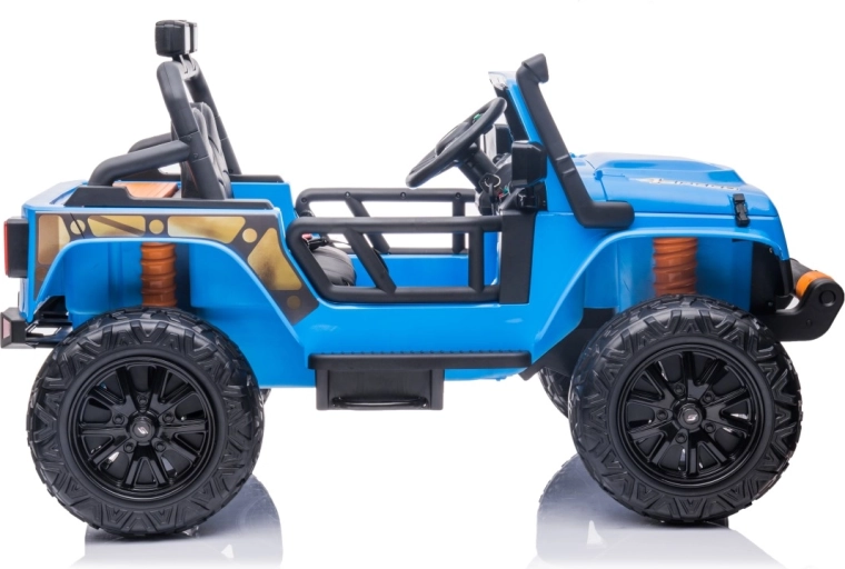 Dobrodružstvo sa začína s elektrickým autíčkom Jeep Monster 24V v modrej farbe. Výkonný pohon 4x200 W, veľké EVA kolesá 30 × 12 cm, dvojmiestne sedadlo z ekokože s pásmi a diaľkové ovládanie 2,4 GHz s núdzovým tlačidlom Stop zaistia zábavnú a bezpečnú jazdu. Nechýbajú LED svetlá, vysoký svetlý profil 21 cm a audio panel s MP3/Bluetooth/USB a FM rádiom.