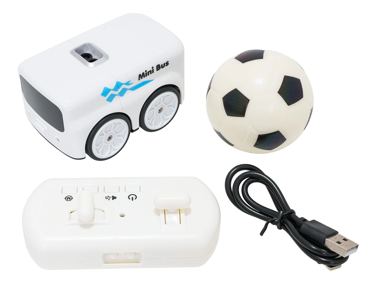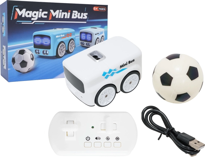 - Autobus, mäkká lopta, diaľkový ovládač, návod, USB-C kábel