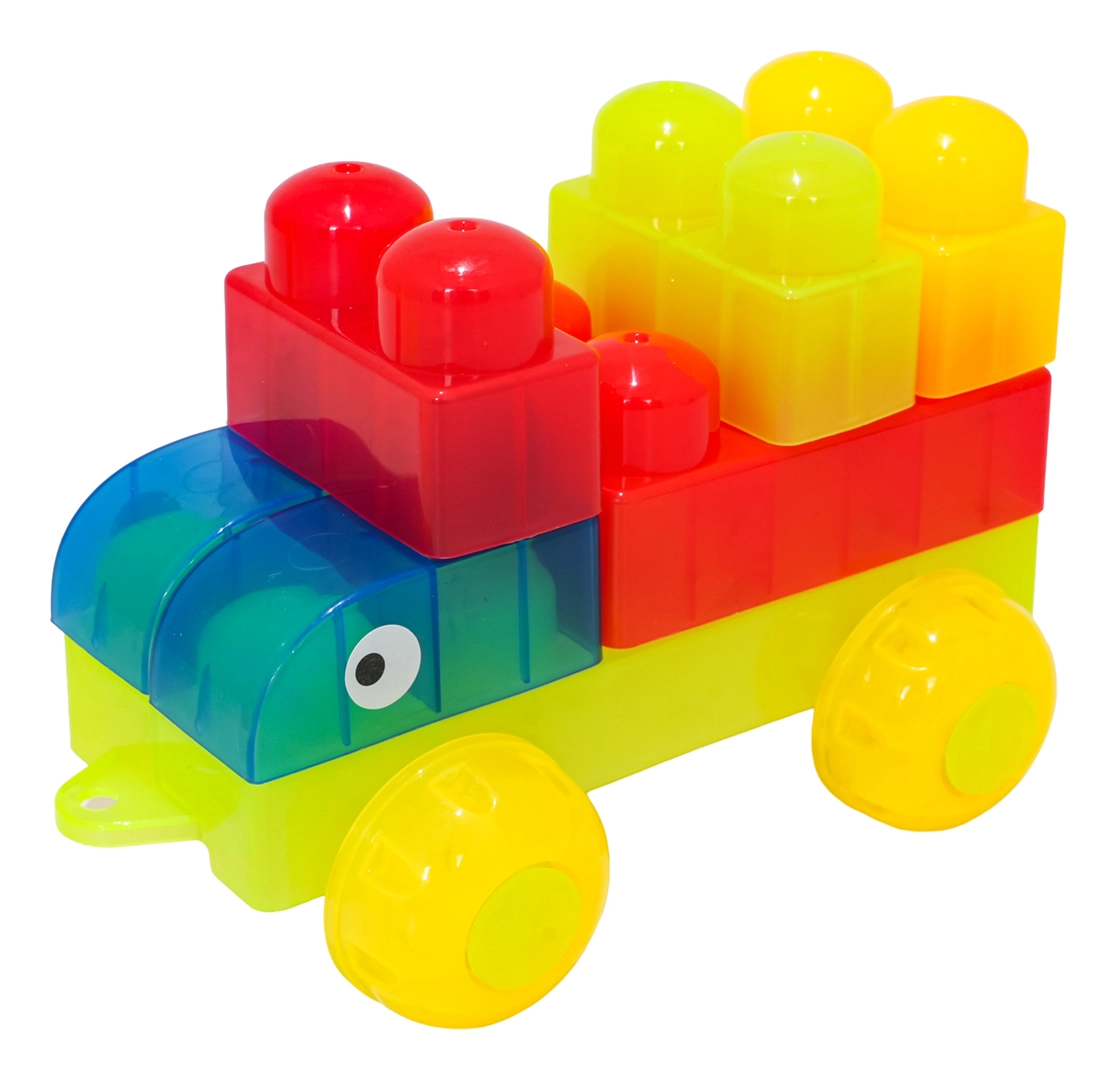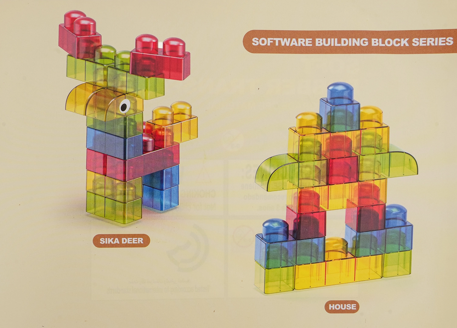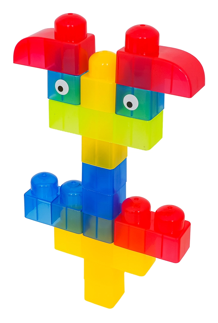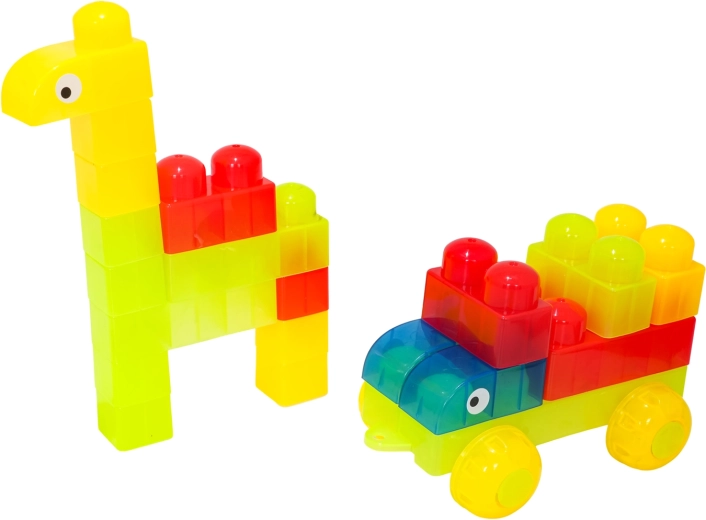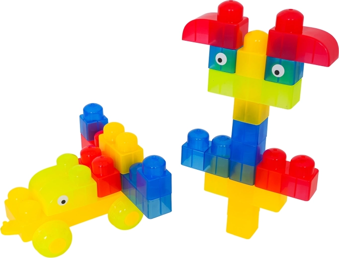 Vďaka rozmanitým tvarom (jednodielne, dvojité, trojité kocky, podvozok s kolesami a diely so strieškou) postavíte roztomilé zvieratká, jednoduché vozidlá aj farebné postavičky. Súčasťou sú samolepky s očkami pre ešte hravejší výraz postavičiek a obrázkový návod pre rýchly štart. Stavanie zlepšuje koordináciu oko–ruka, jemnú motoriku a podporuje tvorivú hru.