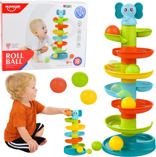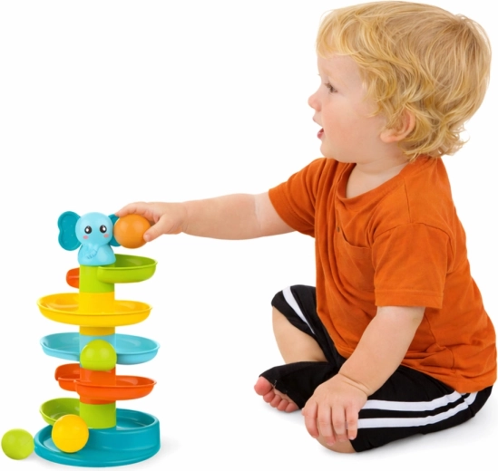 Táto didaktická zábavná veža je navrhnutá pre najmenšie rúčky. Diely majú bezpečné tvary a veľkosť na jednoduché uchopenie a vkladanie guľôčok. Deti s nadšením opakujú jednoduchý úkon – pustiť guľôčku zhora – a sledujú, ako sa vinie po farebných špirálach nadol, čo prináša radosť aj upokojujúci vizuálny efekt.