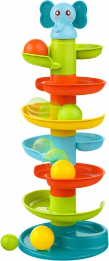 Sedem farebných poschodí vytvára plynulú špirálu. Dlhá jazda guľôčok deti baví a učí princípom príčiny a následku.