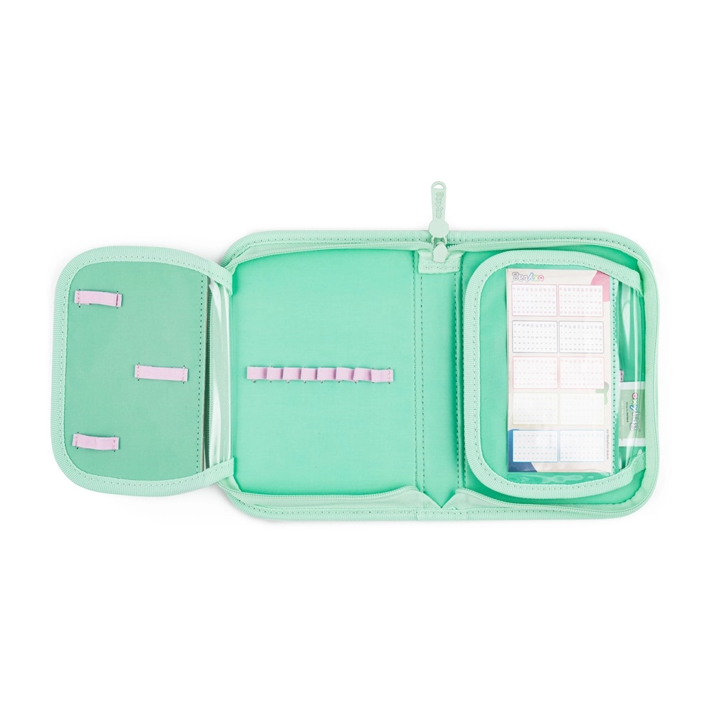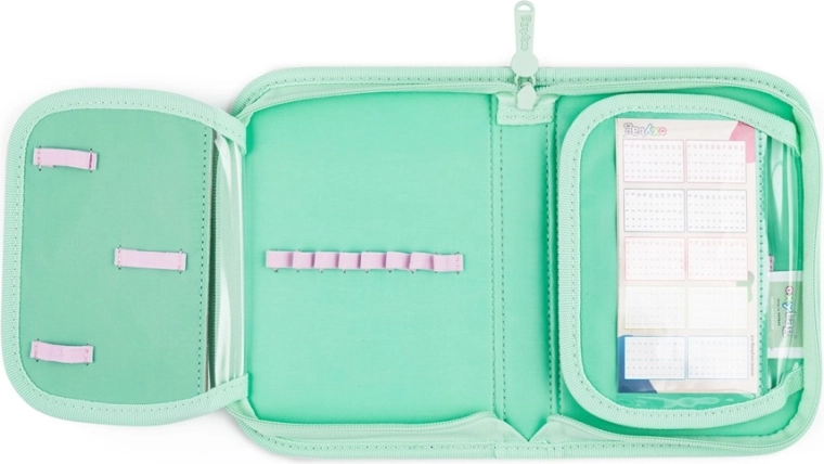 Vrecko so sťahovaním na šnúrky je ideálne na telesnú výchovu a voľný čas. Peračník s dvoma chlopňami ponúka pútka na ceruzky a priehľadnú fóliu na rozvrh.