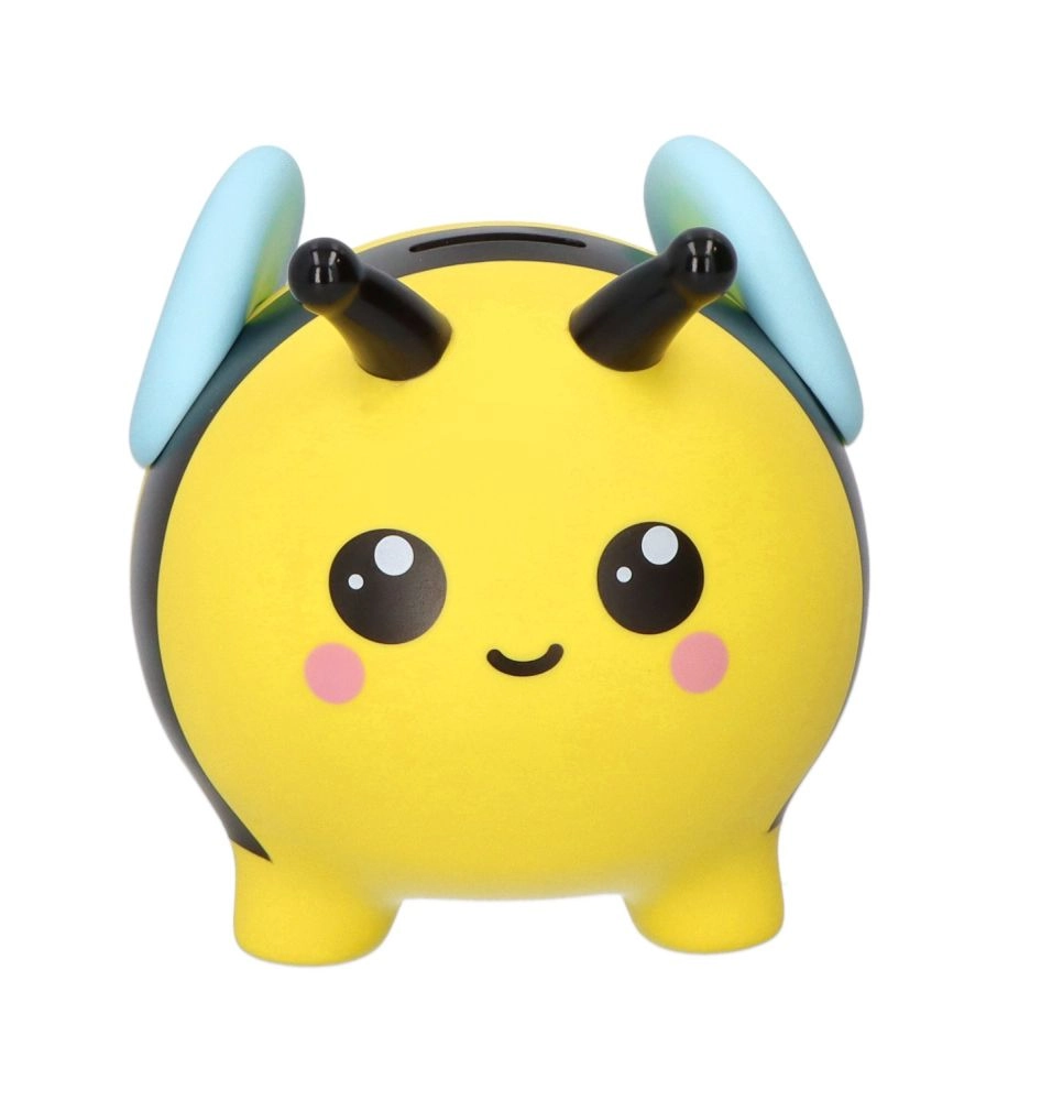 Prívetivá včielka s modrými krídelkami a líčkami spríjemní deťom prvé krôčiky vo finančnej gramotnosti a ozdobí každý detský izbičku.
