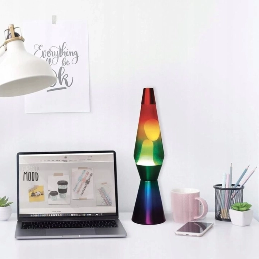 Objavte čaro klasickej lávovej lampy v modernom dúhovom kabáte. Plynúci vosk v teplom svetle vytvára upokojujúci pohyb, ktorý je ideálny na relax po náročnom dni aj ako originálny doplnok do obývačky, spálne alebo pracovne. Vďaka výške 40 cm vynikne ako atraktívna dekorácia, bez toho, aby zaberala príliš miesta.