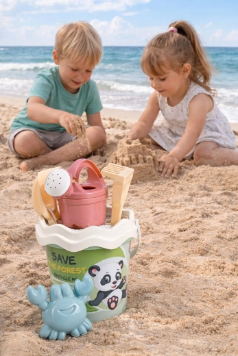 Táto odolná a bezpečná sada na piesok je ideálna na pláž, pieskovisko aj do záhrady. Vďaka ľahkej konštrukcii a ergonomickému spracovaniu sa s ňou deťom ľahko manipuluje a rozvíjajú jemnú motoriku aj kreativitu. Vedierko s priemerom 17 cm a výškou 16 cm ponúka dostatok priestoru na naberanie a prenášanie piesku či vody.