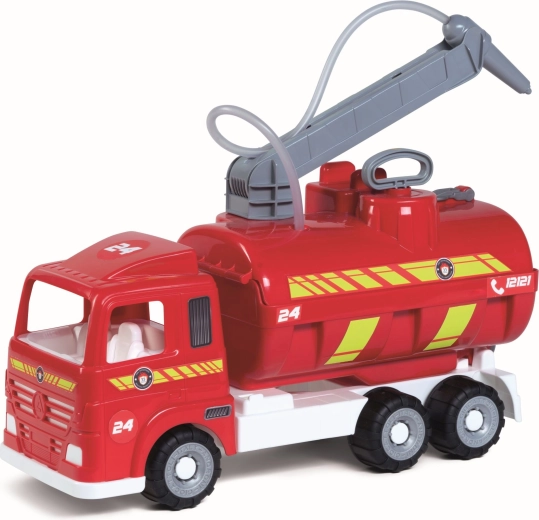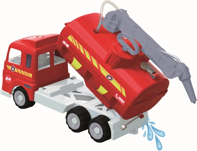 Cisterna a hadica s tryskou vytvárajú autentický vzhľad hasičského vozidla a podporujú kreatívnu hru.