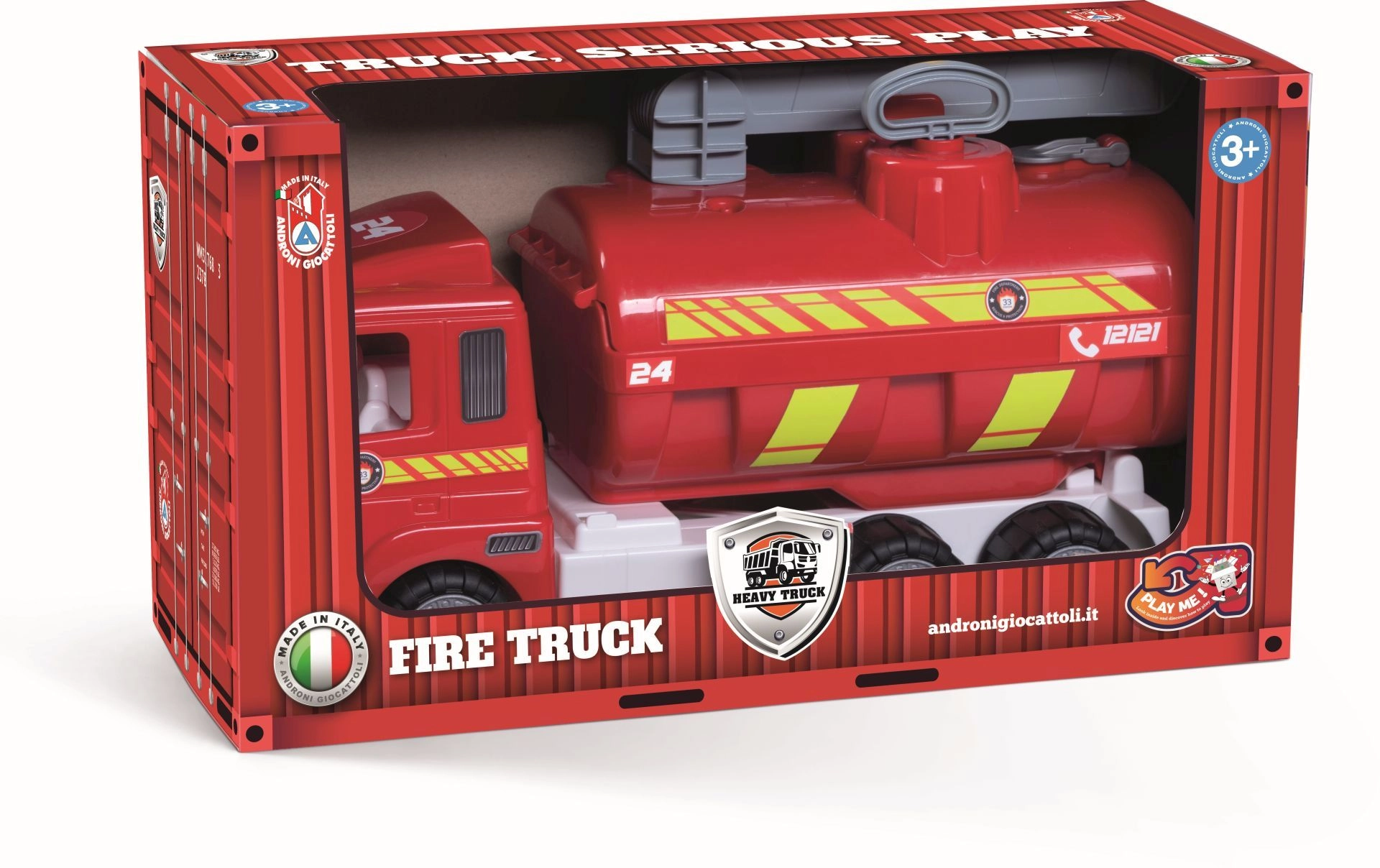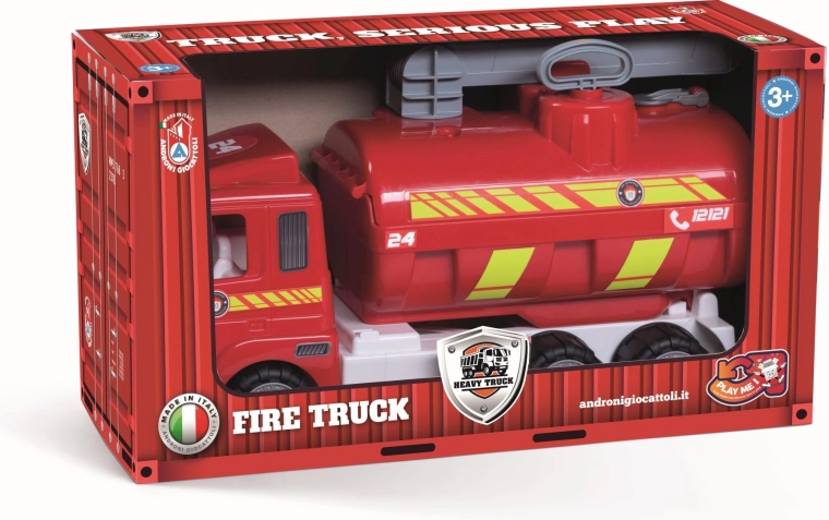 Hasičské auto ANDRONI Heavy Trucks prináša deťom autentický zážitok z hrania. Vďaka nádrži na vodu a ručnej pumpe môžu skutočne striekať vodu a „hasiť“ požiare na záhrade aj doma. Pogumované kolesá zabezpečujú skvelú priľnavosť a tichší chod, zatiaľ čo pevná konštrukcia z kvalitného plastu odolá aj intenzívnej detskej akcii.
