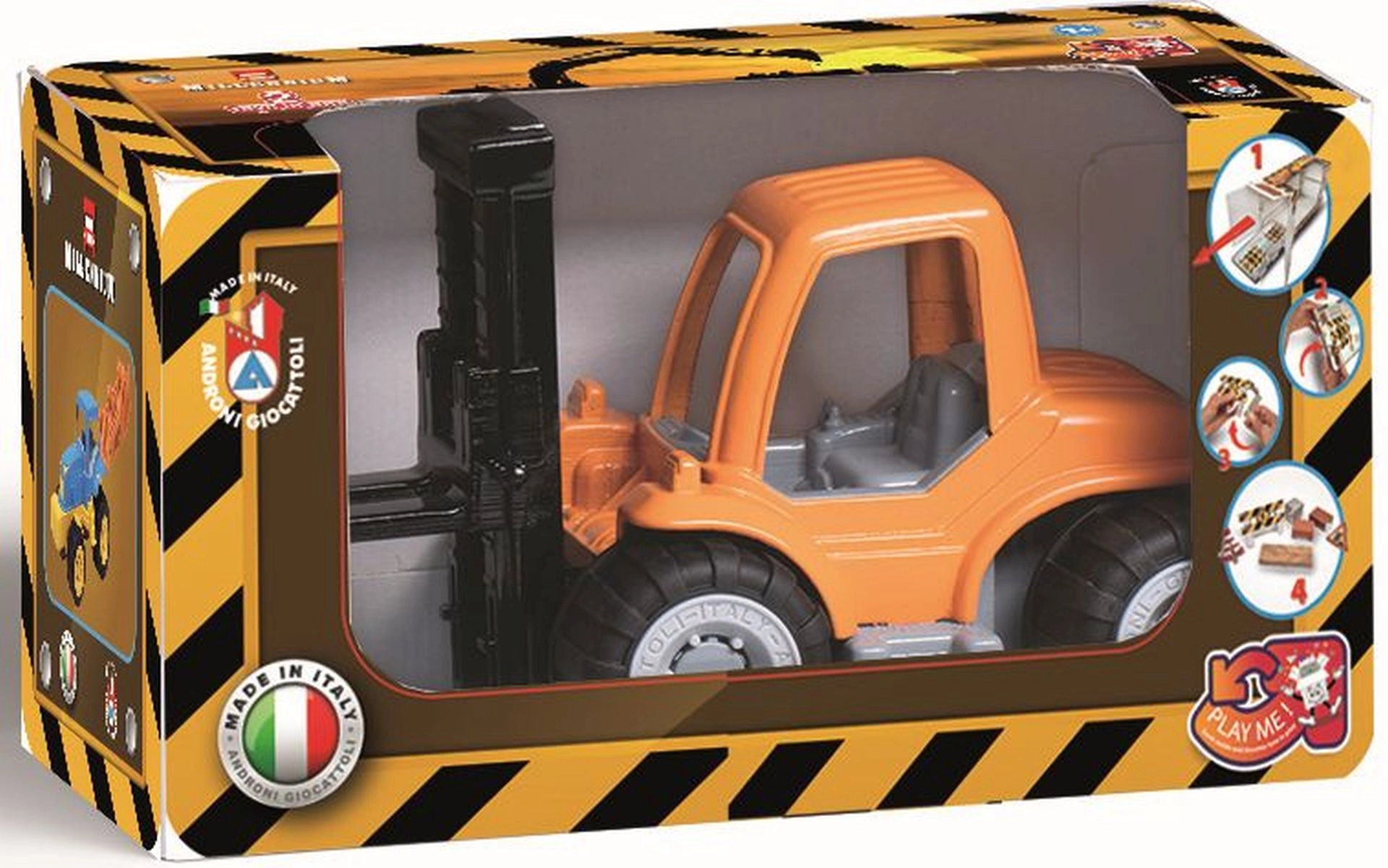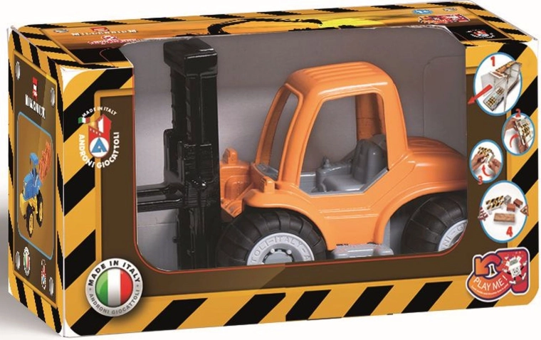 Robustný plastový vysokozdvižný vozík z radu Millennium od značky Androni poteší malých staviteľov už od 10 mesiacov. Má pohyblivú zdvíhaciu vidlicu, pogumované kolesá pre stabilitu a dodáva sa s kartónovými blokmi na tvorbu herných scenárov. Vyrobené v Taliansku z kvalitných plastov.