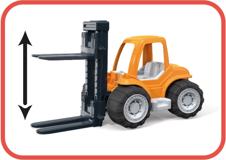Pohyblivé vidlice umožnia deťom dvíhať a prevážať drobné predmety aj priložené bloky, čím podporujú koordináciu a jemnú motoriku.