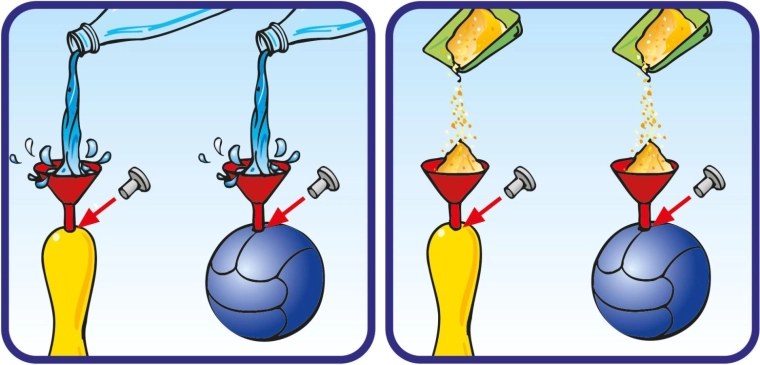 Set je navrhnutý pre jednoduché používanie: plniace otvory sa po naplnení uzavrú malými zátkami, ktoré sú súčasťou čierneho držiaka kolkov. Vďaka výške kolkov 27 cm je hra prehľadná aj pre menšie deti a podporuje rozvoj motoriky, koordinácie a presnosti.