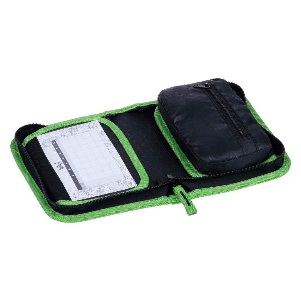 Kvalitný zips YKK zaisťuje dlhú životnosť aj pri každodennom používaní. Vo vnútri nájdete vrecko na drobnosti, okienko na rozvrh hodín a pevné gumičky, ktoré bezpečne držia aj trojhranné ceruzky a fixky. Peračník je dodávaný bez náplne a je vyrobený z recyklovaného materiálu – šetrná voľba pre rodičov aj planétu.