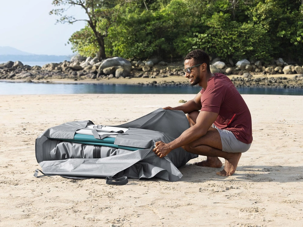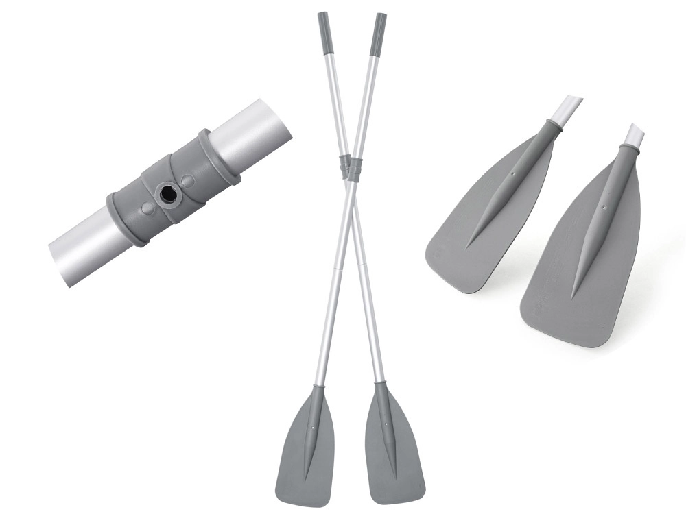 V balení nájdete 2 hliníkové pádla, ručnú pumpu, prenosnú tašku a opravárenskú sadu. Rýchloventilky urýchlia prípravu aj zbalenie.